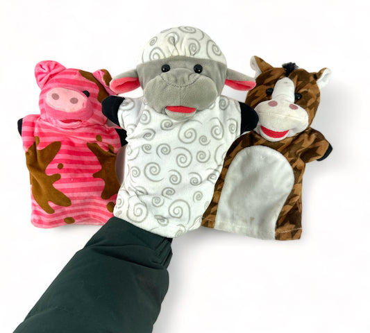 Farm Friends Hand Puppets Horse, Sheep, and Pig