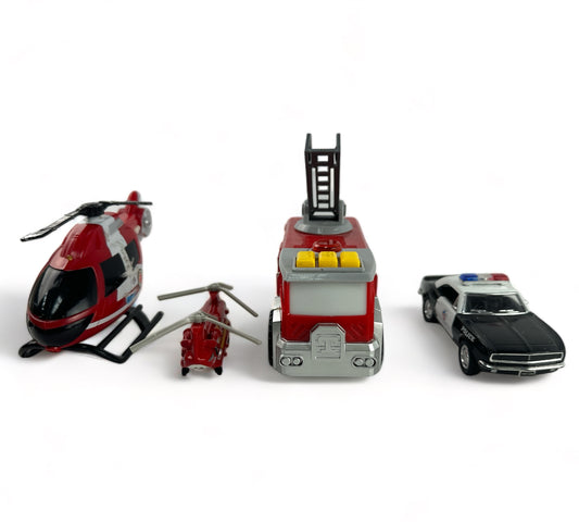 Light Up Fire Truck with Helicopters and Police Car Rescue Set