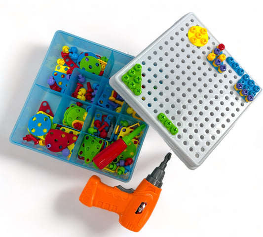 Creative Mosaic Drill Set for Kids, Creative Drilling Toy with Screwdriver Tool Playset, Electric Drill Toy & Rainbow Fasteners