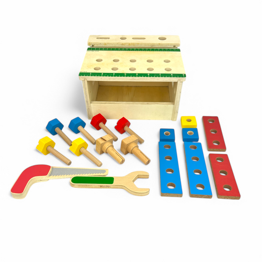 Hammer & Saw Tool Bench - Wooden Building Set with Wrench & Saw