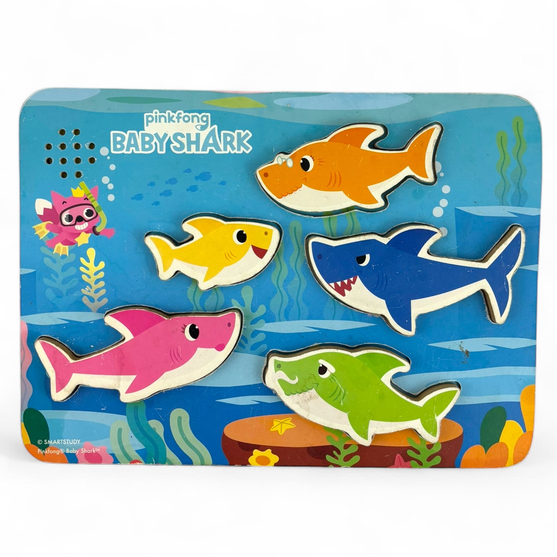 Sing along with the Baby Shark Musical Wooden Sound Puzzle! Place each shark family member to hear their catchy tune. This delightful puzzle helps little ones develop fine motor skills while bopping to their favorite song. Doo doo doo doo doo!