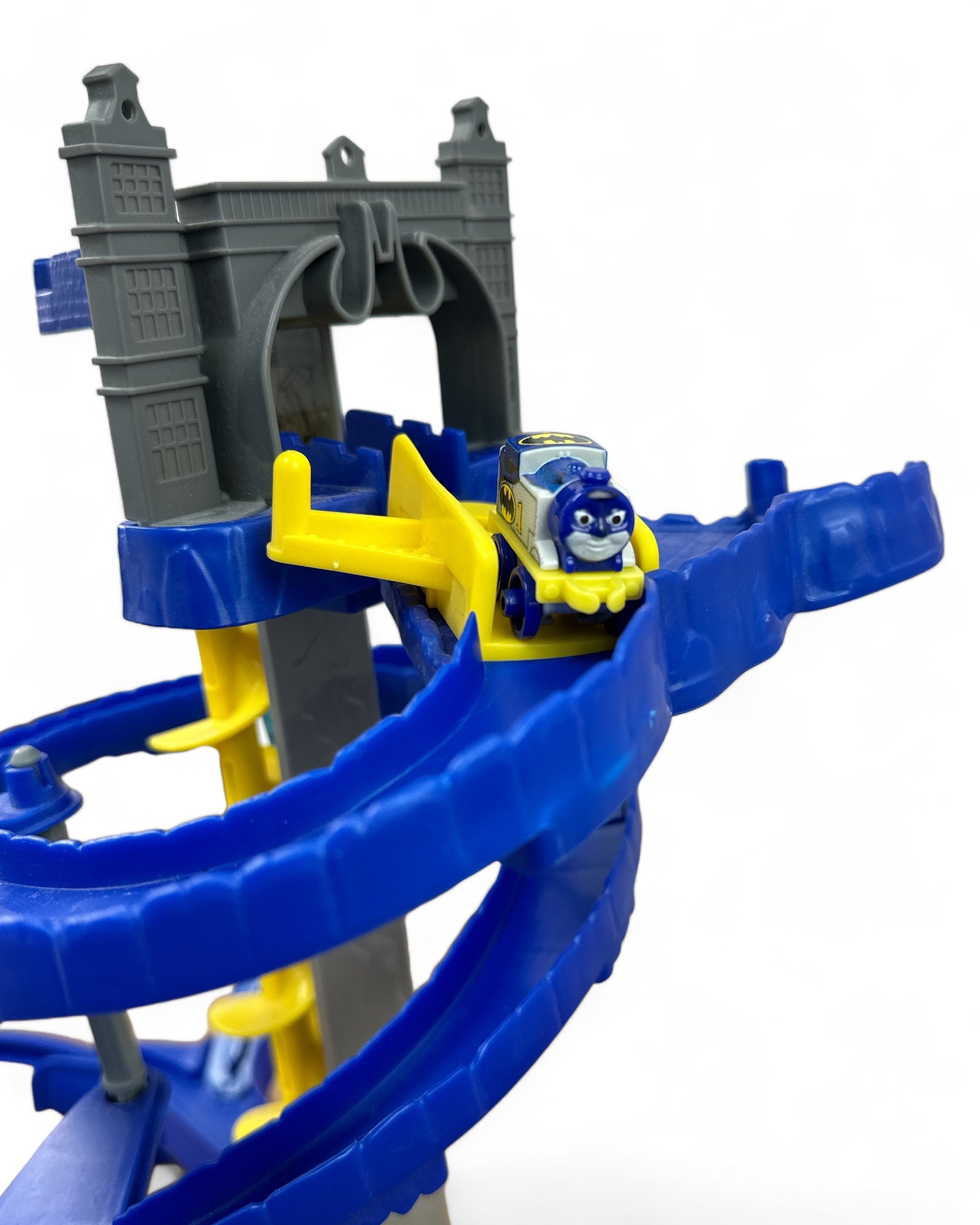 Calling all Bat-fans! The DC Batwheels Train Tower is the ultimate Batcave accessory. Zoom Batmobiles up the spiraling ramps, launch crime-fighting missions from the lookout tower, and lock up villains in the jail. This action-packed set is the perfect place for Batwheels adventures!