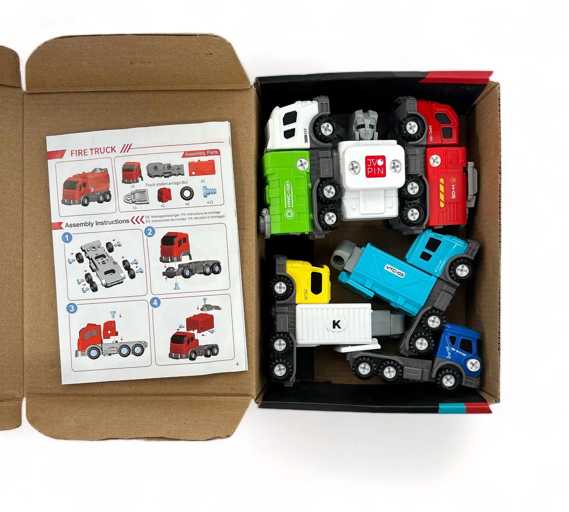 Beep, boop, transform! Jvopin Blitz is 5 trucks in 1! These tough service vehicles become a mighty robot warrior with a twist of the wrist (or a screwdriver, included). Recycle, rescue, and rebuild Blitz is ready for endless playtime adventures!
