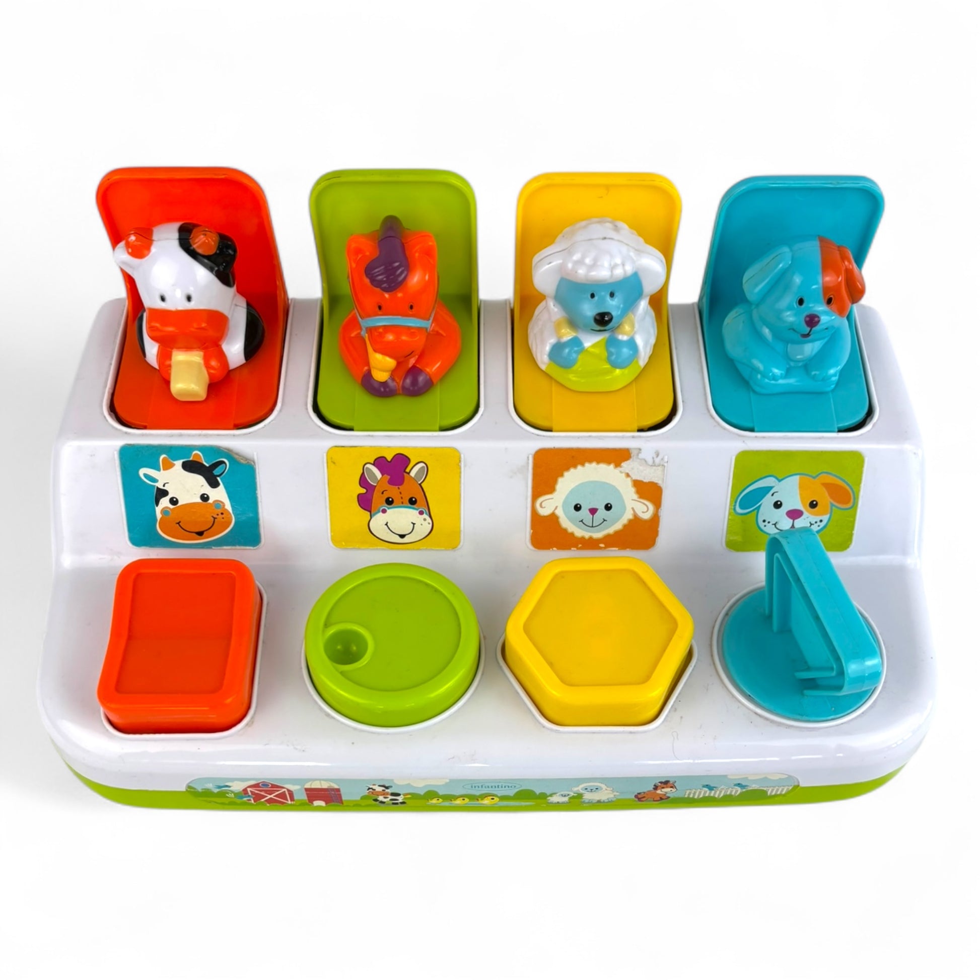 Ready for a giggle-filled playtime? The Infantino Bop and Pop Animal Pals toy is here! Press the buttons to make friendly animals pop up, bringing delightful surprises and helping little hands learn cause and effect. It's a popping good time!