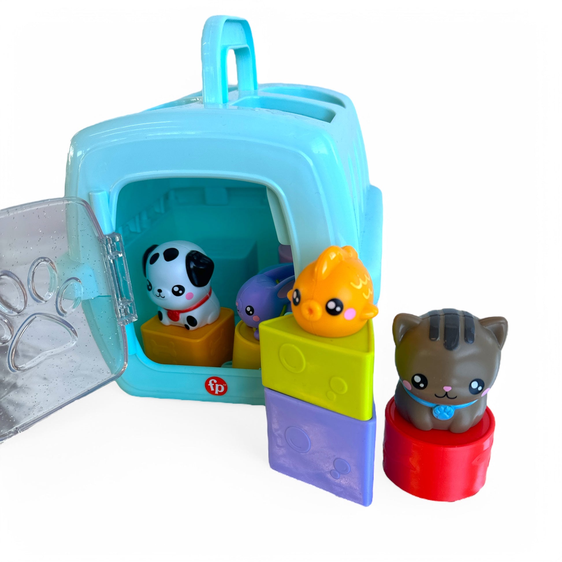 Woof woof! This adorable pet carrier is packed with fun! Your little one can roll the ball, spin the wheels, and explore the colorful blocks. It's the perfect way to keep curious minds busy and entertained on the go!