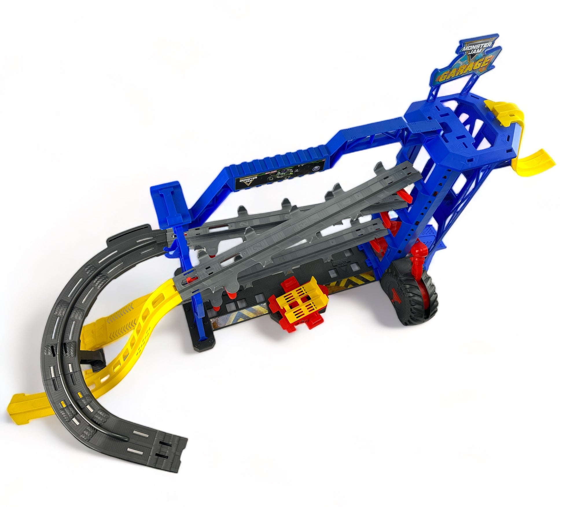 Roar into playtime fun with the Monster Jam Garage! This set lets you store your monster trucks (sold separately) and unleash them for crushing crashes and epic stunts. It's a revvin' good time for monster truck mania!