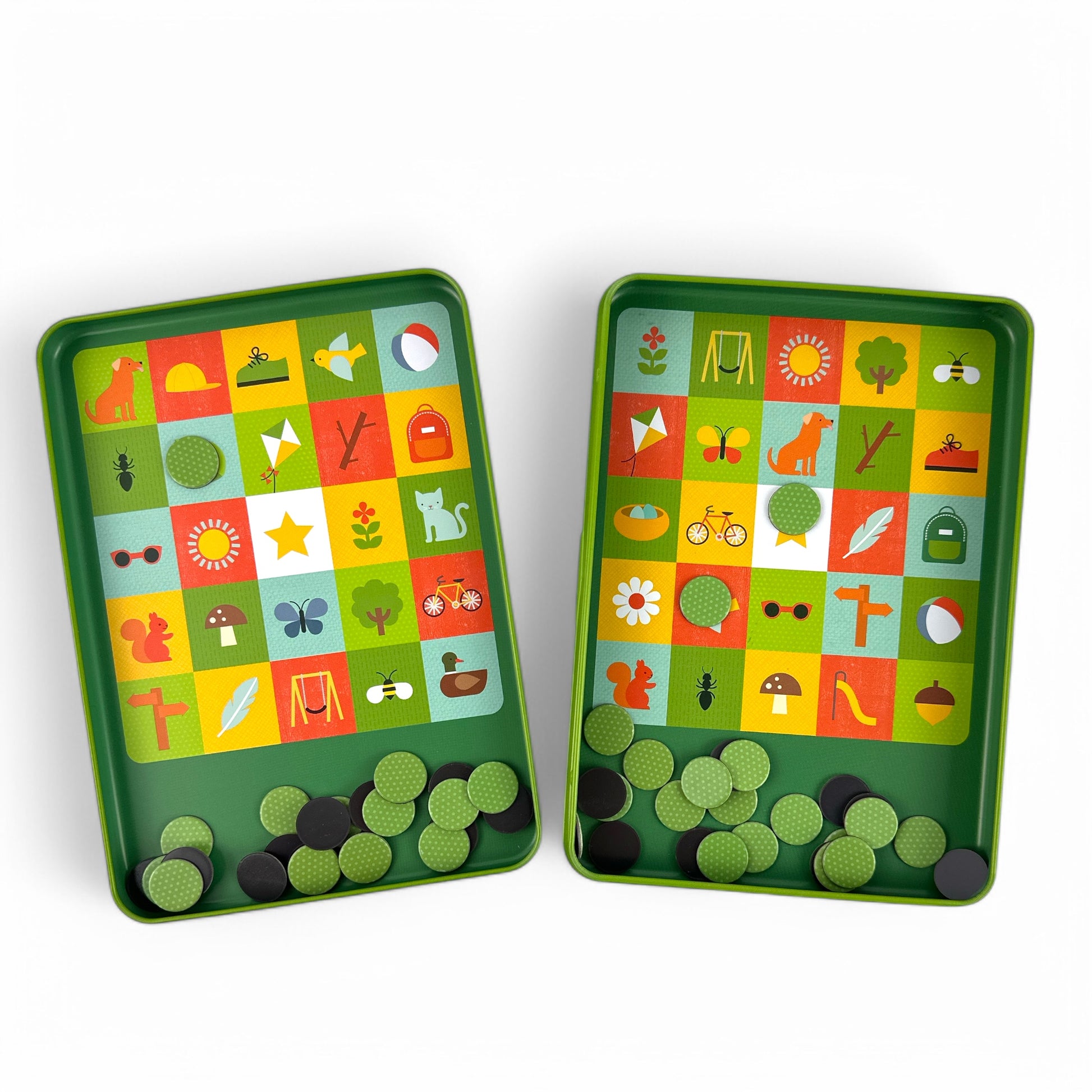 Let's play bingo in the park! This adorable magnetic game is perfect for picnics and road trips. Spot the squirrels, the birds, and the flowers! Can you get a bingo? Let the park adventures begin!