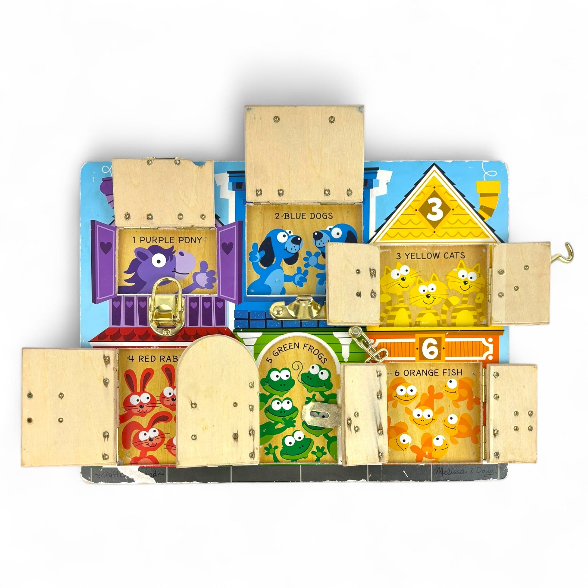 Unlock a world of discovery with the Melissa & Doug Latches Board! Little hands will giggle as they hook, snap, and slide open different latches. Behind each door hides a fun surprise, boosting fine motor skills and curious minds. It's hands-on, playful learning at its best!