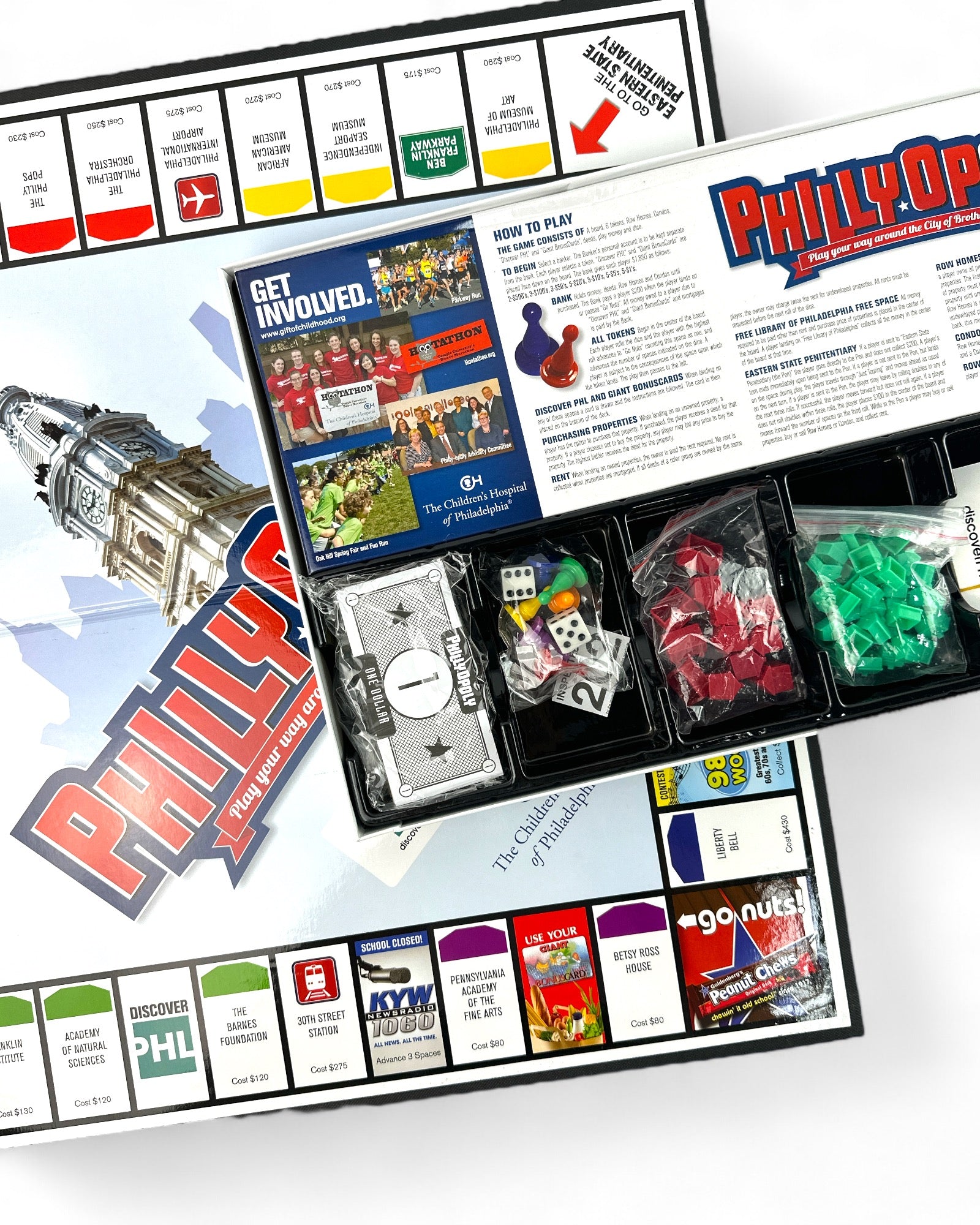 Own the City of Brotherly Love with this limited edition Phillyopoly board game! Featuring iconic Philadelphia landmarks and businesses, this game is a must-have for any Philly fan. Roll the dice, buy properties, and build your Philly empire!