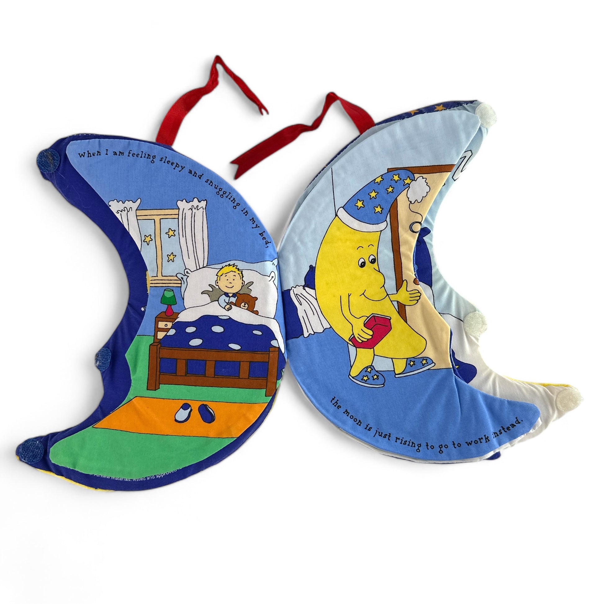 Blast off into bedtime fun! This adorable plush book is perfect for little astronauts. With soft textures and colorful illustrations, your baby will love exploring the moon and learning about the night sky. It's a perfect way to make bedtime a cosmic adventure!