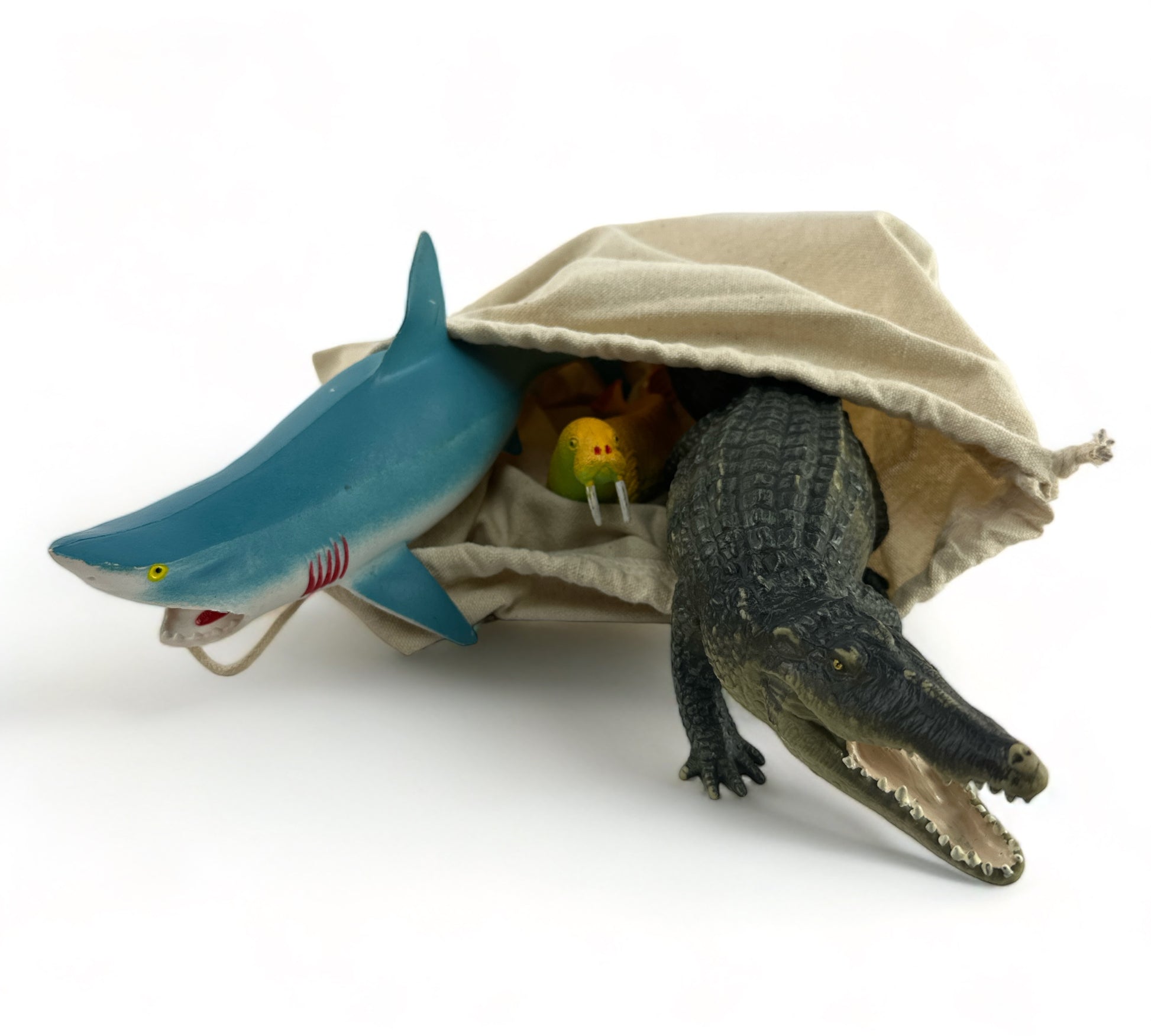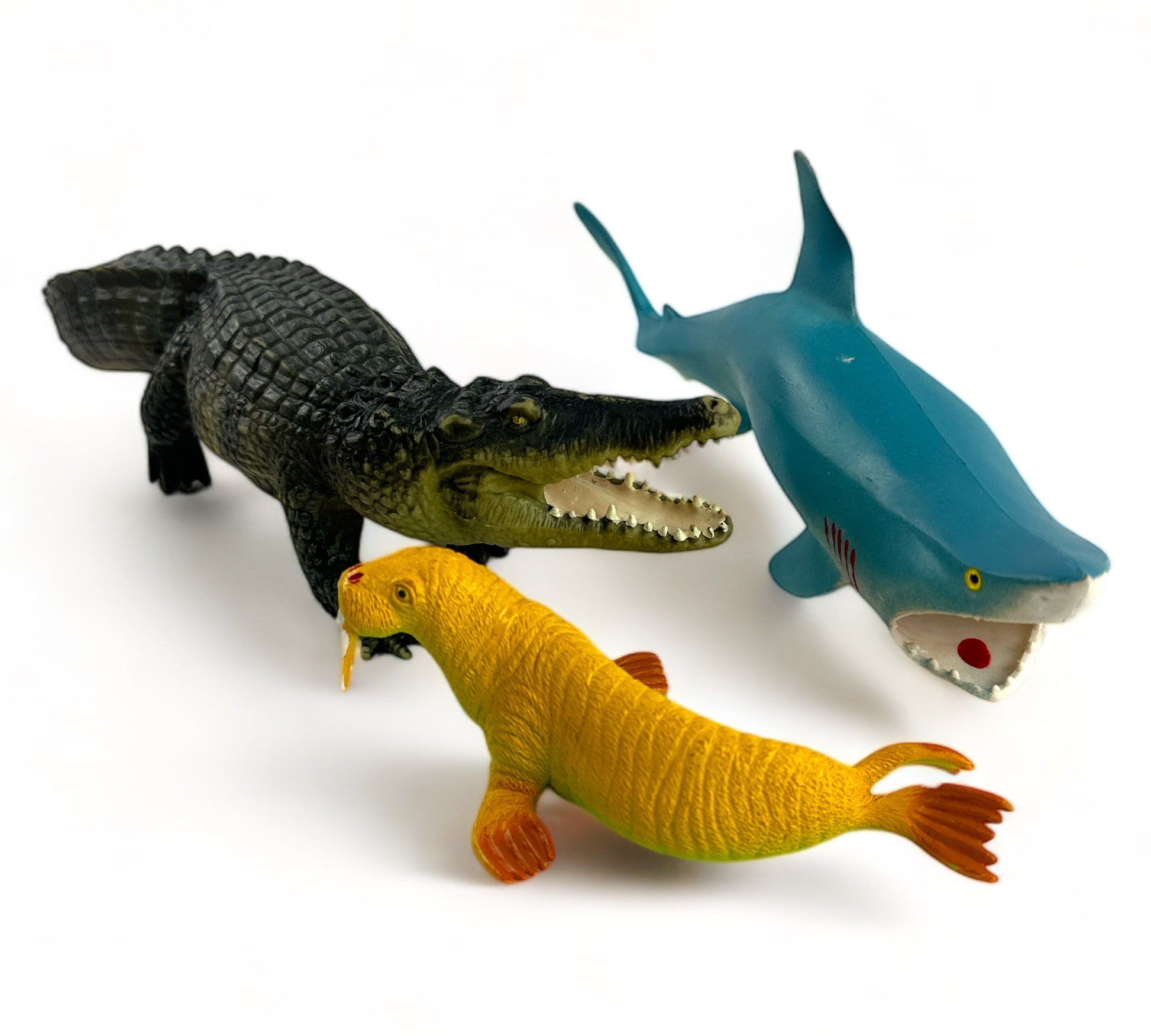 Dive into bath time fun with this mystery aquatic crew! Who will you discover? A toothy grin, flippers, or maybe a powerful tail? These three pals are ready for splashy adventures in the tub!
