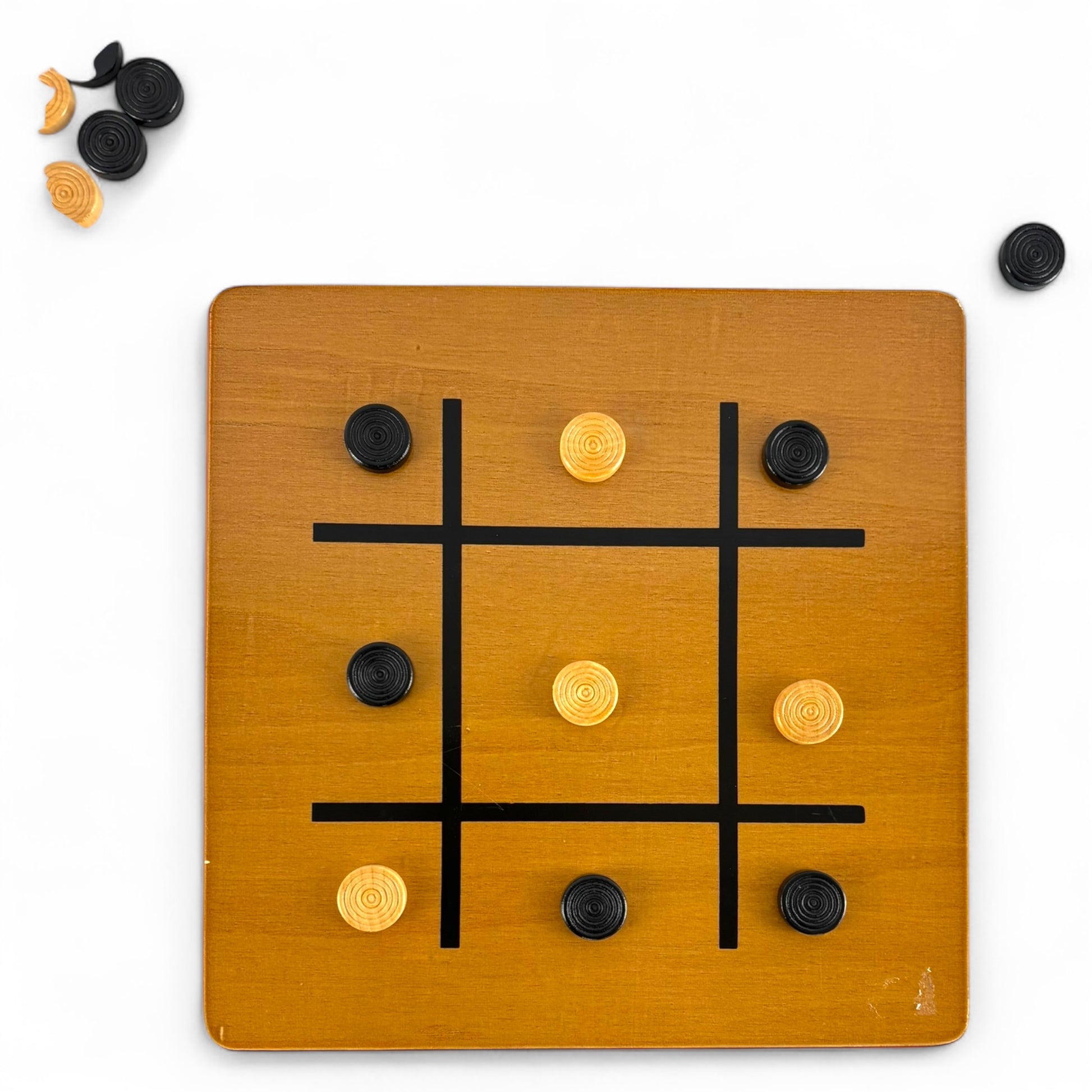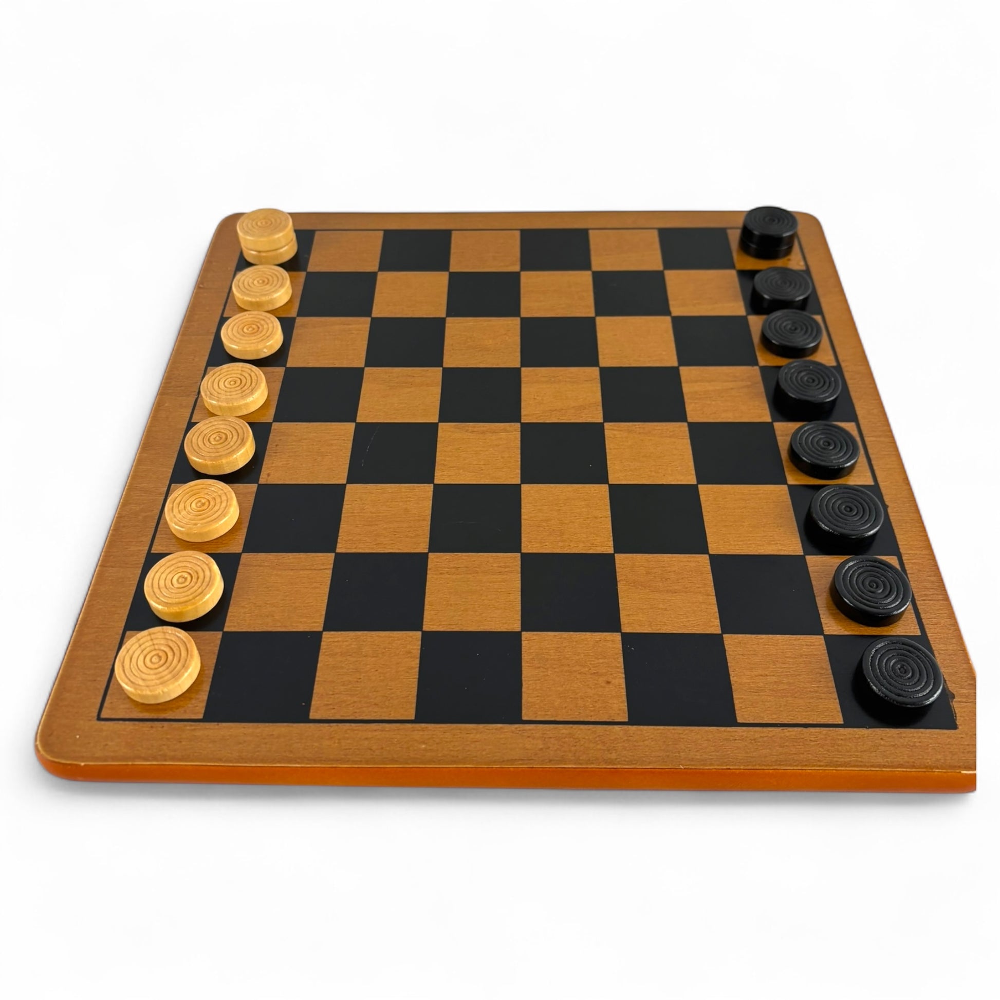 Vintage Wooden 2-in-1 Checkers and Tic-Tac-Toe Game Set