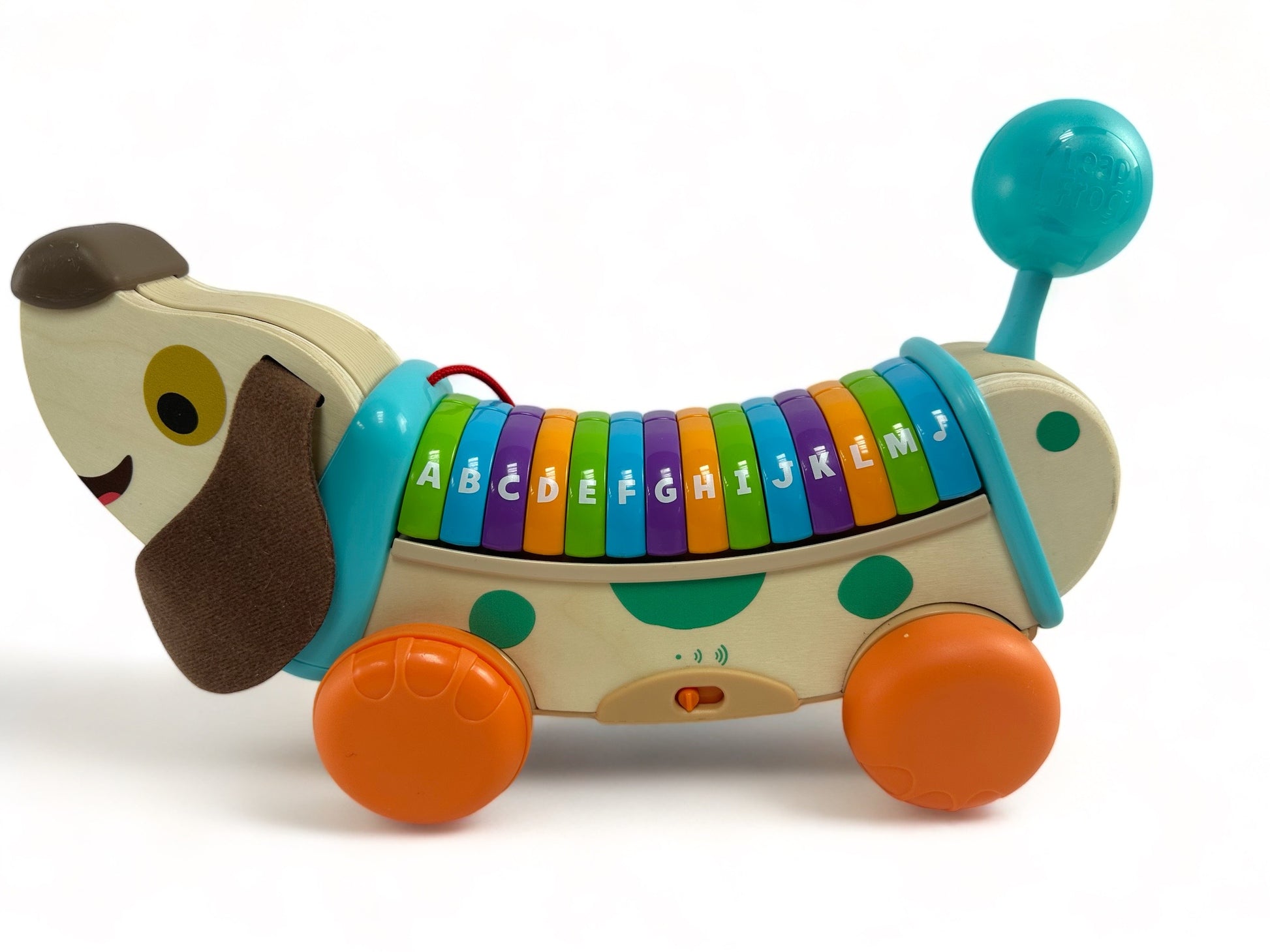 Calling all alphabet adventurers! Woof your way to learning with the Wooden AlphaPup! This playful pup lights up and sings the alphabet song as you walk it along. Press its letter buttons to discover new sounds and stories. With soft, floppy ears and a wagging tail, playtime never gets ruff!